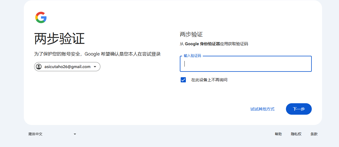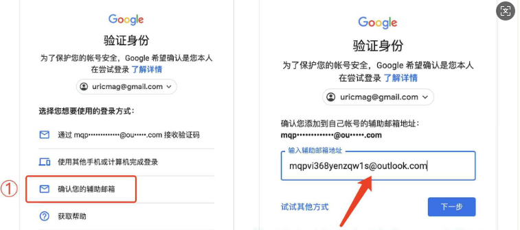 输入购买账号中辅助邮箱的地址即可,如跳身份验证器直接忽略下图再往下看。选择身份验证器