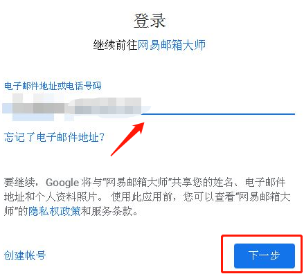 第二步,添加谷歌邮箱,点击“下一步”