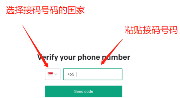 输入手机号,点击发送“send code”