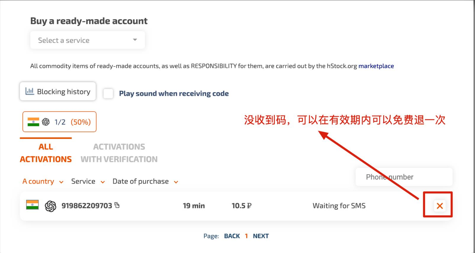 现在你有一个可以接码的号码了,图下919862209703就是号码,复制号码到OpenAI验证码界面