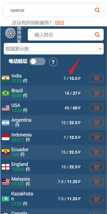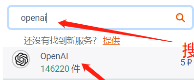 在平台接验证码,右边服务栏,输入openai,点击